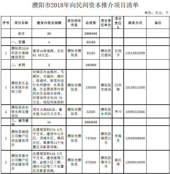 附件:濮陽市2018年向民間資本推介項目清單