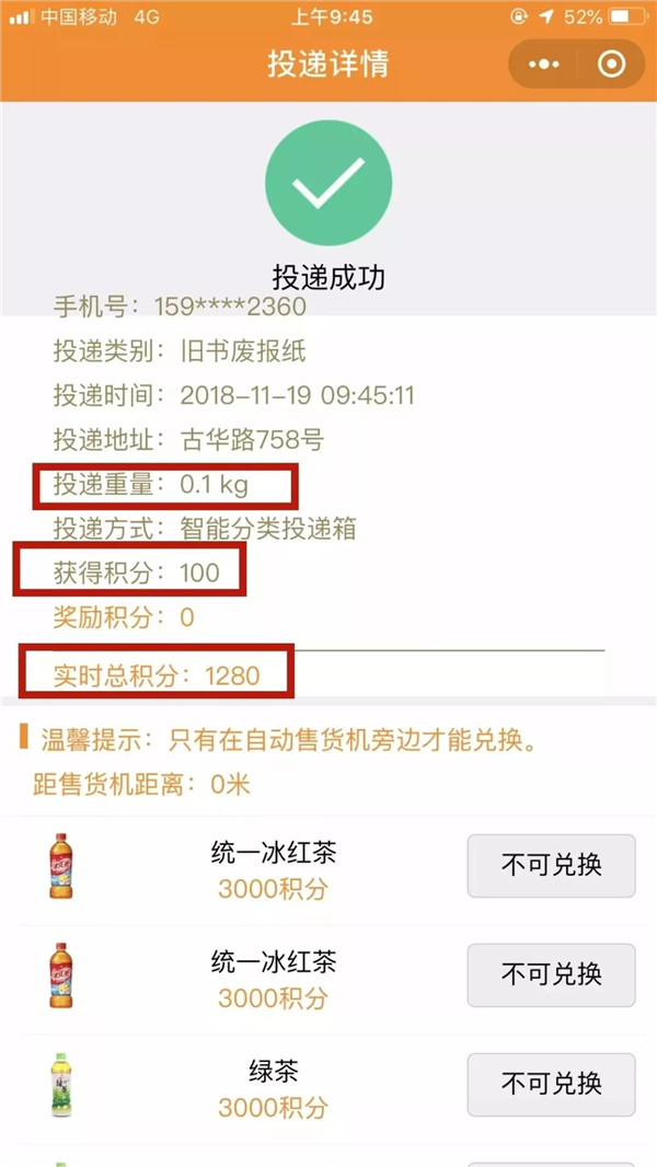 居民參與垃圾分類(lèi)不僅可以全天候獲取綠色積分,累積到一定分值后,還可以24小時(shí)使用綠色賬戶積分在小區(qū)的兌換機(jī)上兌換禮品。