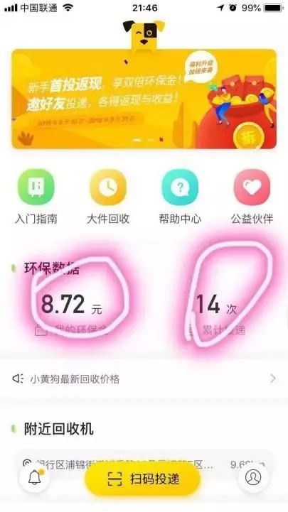 回收機(jī)會(huì)對(duì)投入的垃圾進(jìn)行智能識(shí)別和智能稱重,最后根據(jù)不同廢品的市場(chǎng)價(jià)格計(jì)算返現(xiàn)金額,居民在“小黃狗APP”就能看到賬戶一共有多少環(huán)保金,總計(jì)投遞了多少次。線下變廢為寶,線上積分返現(xiàn),通過(guò)有償回收鼓勵(lì)居民參與垃圾分類(lèi)。