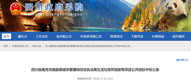 原標(biāo)題:垃圾處理補(bǔ)貼費(fèi)68元/噸,中國(guó)環(huán)保中標(biāo)四川南充市南部縣垃圾焚燒發(fā)電項(xiàng)目