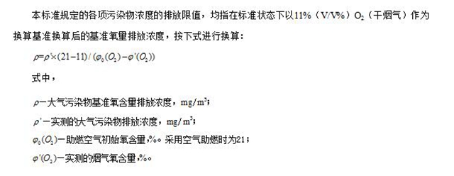 4.3 生產(chǎn)設(shè)施應(yīng)采取合理的措施,不得稀釋排放。在國家未規(guī)定生產(chǎn)設(shè)施單位產(chǎn)品基準排氣量之前,以實測折標準狀態(tài)下以11%(V/V%)O2(干煙氣)濃度作為判定大氣污染物排放是否達標的依據(jù)。