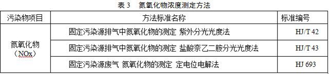 5.8 對氮氧化物排放濃度的測定采用表3所列的方法標準或環(huán)境保護部認可等效的分析方法。