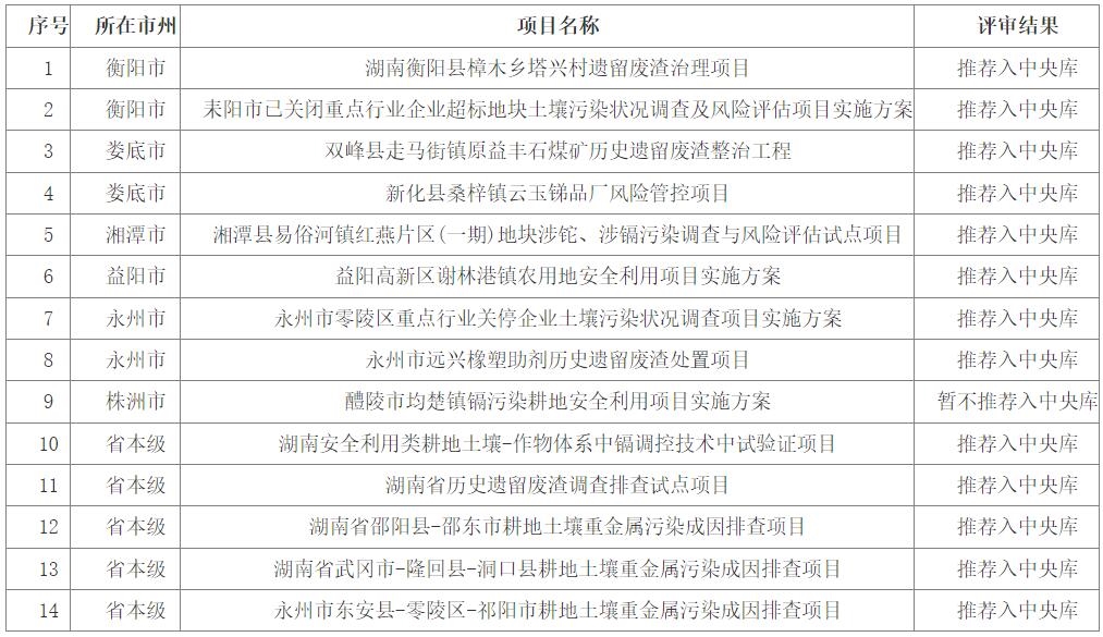 湖南省生態(tài)環(huán)境廳關(guān)于2022年度第一批土壤污染防治項(xiàng)目、地下水污染防治項(xiàng)目評(píng)審結(jié)果的公示 根據(jù)《土壤污染防治資金管理辦法》、《中央生態(tài)環(huán)境資金項(xiàng)目管理規(guī)程》、《中央生態(tài)環(huán)境資金項(xiàng)目?jī)?chǔ)備庫入庫指南(2021年)》等有關(guān)要求,為加強(qiáng)項(xiàng)目?jī)?chǔ)備,提高項(xiàng)目?jī)?chǔ)備質(zhì)量,經(jīng)項(xiàng)目單位申請(qǐng)、市級(jí)生態(tài)環(huán)境部門審查、專家評(píng)...