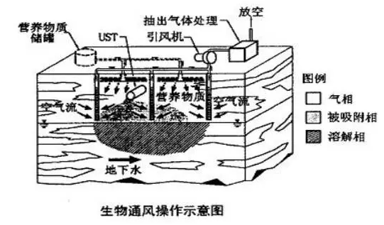 (bioventing)又稱土壤曝氣,是基于改變生物降解的環(huán)境條件而設(shè)計(jì)的。它是原位的一種方式。生物通風(fēng)是利用土壤中的微生物對不飽和區(qū)中的有機(jī)物進(jìn)行生物降解,而在毛細(xì)管區(qū)和保護(hù)區(qū)的土壤不受影響??刹捎孟虿伙柡蛥^(qū)注入空氣(或氧氣)、添加營養(yǎng)物(氮和磷酸鹽)和接種特異工程菌等措施來提高生物通風(fēng)過程中微生...