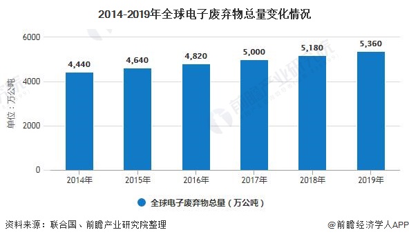 1、全球電子廢棄物產(chǎn)生總量和人均產(chǎn)量不斷增加 2014-2019年,全球電子廢棄物總量不斷增加?!?020年全球電子廢棄物監(jiān)測》報告顯示,2019年全球產(chǎn)生的電子廢棄物(帶電池或插頭的廢棄產(chǎn)品)總量達(dá)到了創(chuàng)紀(jì)錄的5360萬公噸。 從人均電子廢棄物產(chǎn)量來看,2014-2019年全球人均電子廢棄物產(chǎn)量逐...