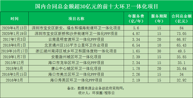 相關(guān)閱讀:周末薦讀 | “史上最大環(huán)衛(wèi)PPP項(xiàng)目”招標(biāo):門檻高,要求嚴(yán),不裁員企業(yè)還加分! 進(jìn)入2020年,環(huán)衛(wèi)行業(yè)的“巨額訂單”又來(lái)了。 新年前四月,深圳寶安區(qū)接連放出兩個(gè)環(huán)衛(wèi)一體化項(xiàng)目,首年服務(wù)經(jīng)費(fèi)總計(jì)高達(dá)10.47億元/年,合同總金額累計(jì)超150...