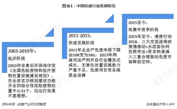 近幾十年來,隨著經(jīng)濟的高速發(fā)展,我國環(huán)境污染問題和自然資源緊張問題逐步凸顯出來。在環(huán)保壓力逐漸增大的背景下,我國危廢行業(yè)也得以快速發(fā)展。目前,我國危廢行業(yè)市場規(guī)模超千億,未來,市場競爭格局有望重塑。 危廢行業(yè)進(jìn)入低集中競爭階段 截止2018年底,我國危廢行業(yè)一共經(jīng)理了三個階段。第一個階段是2003-...