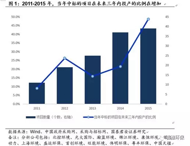 上市公司垃圾焚燒項目開工加速,投產(chǎn)周期縮短 1)在對上市公司所有在手垃圾焚燒項目進(jìn)行統(tǒng)計的基礎(chǔ)上,我們對項目從中標(biāo)/簽約到投產(chǎn)的時間(投產(chǎn)周期)做了進(jìn)一步分析。我們選取的樣本包括北控環(huán)境、光大國際、瀚藍(lán)環(huán)境、錦江環(huán)境、康恒環(huán)境、綠色動力、上海環(huán)境、盛運環(huán)保、首創(chuàng)環(huán)境、旺能環(huán)境、偉明環(huán)保、粵豐環(huán)保、中...