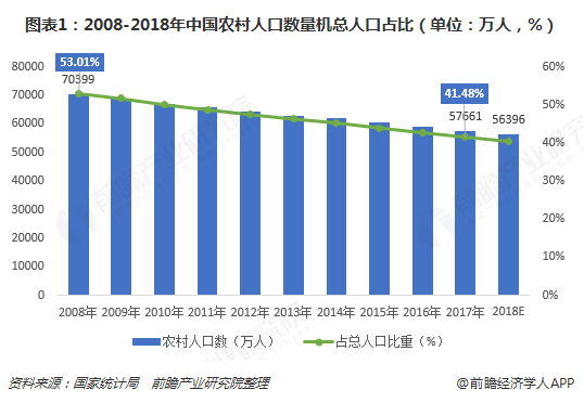 近年來,隨著我國城市化進(jìn)程的不斷推進(jìn),我國城鎮(zhèn)人口持續(xù)增長,而農(nóng)村人口不斷減少,2008年我國農(nóng)村人口數(shù)量為70399萬人,占全國人口總數(shù)的50%以上,隨著城市化進(jìn)程的推進(jìn),農(nóng)村大量人口向城市轉(zhuǎn)移,至2017年,農(nóng)村人口數(shù)量下降至57661萬人,當(dāng)年全國大陸總?cè)丝?39008萬人,農(nóng)村人口數(shù)占比下降...