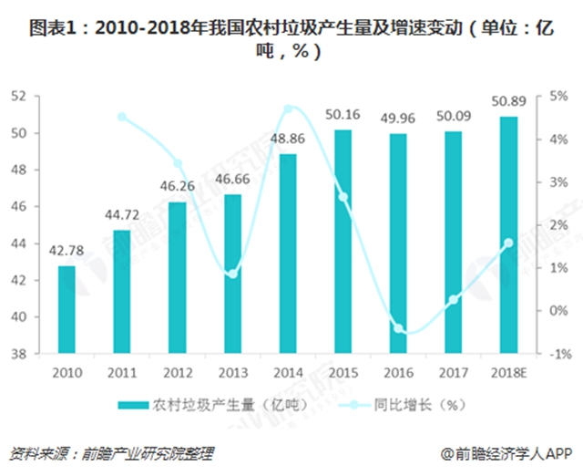 農(nóng)村垃圾產(chǎn)生量持續(xù)增高 近幾年,隨著我國城市化進(jìn)程的不斷推進(jìn),我國城鎮(zhèn)人口持續(xù)增長,農(nóng)村人口有減少的趨勢,但是從農(nóng)村垃圾的產(chǎn)生量看,總量不斷增加,人均農(nóng)村垃圾產(chǎn)生量表現(xiàn)為大幅增加的趨勢。據(jù)統(tǒng)計,2010年我國農(nóng)村垃圾的產(chǎn)生量為42.78億噸,至2017年農(nóng)村垃圾產(chǎn)生量為50.09億噸,由此可見,農(nóng)村...