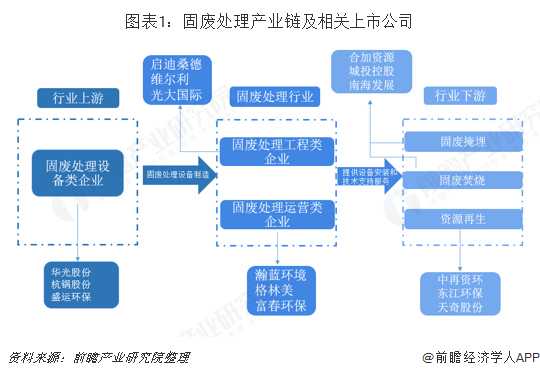 我國固廢處理行業(yè)已經(jīng)形成了較為成熟的產(chǎn)業(yè)鏈,其中上游行業(yè)為固廢處理裝備制造;中游行業(yè)按照公司主營業(yè)務(wù)類別不同可以分為固廢處理工程類企業(yè)和固廢處理運營類企業(yè);下游行業(yè)為固廢處置衍生行業(yè),主要分為固廢掩埋、固廢焚燒和資源再生。上游行業(yè)較為成熟,為固廢處理行業(yè)打下良好的基礎(chǔ);中游行業(yè)參與者多為上市公司,行...