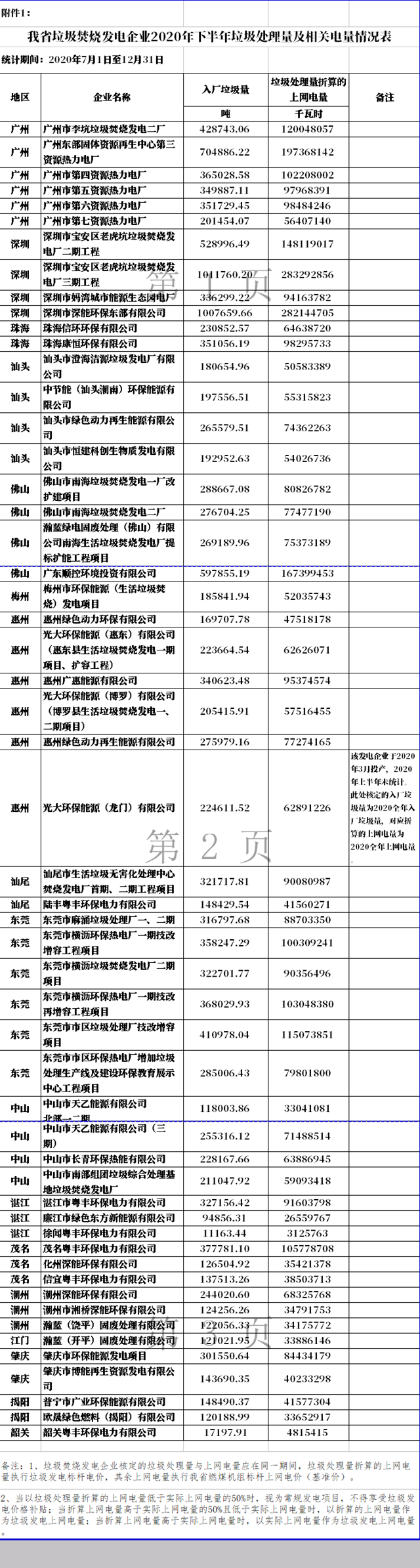 廣東省發(fā)展改革委關于公布有關垃圾焚燒發(fā)電企業(yè)2020年下半年和2021年上半年垃圾處理量及相關電量的通知粵發(fā)改價格函〔2022〕117號各地級以上市發(fā)展改革局(委),廣東電網(wǎng)公司,深圳供電局,相關垃圾焚燒發(fā)電企業(yè): 根據(jù)原省物價局《轉(zhuǎn)發(fā)國家發(fā)展改革委關于完善垃圾焚燒發(fā)電價格政策的通知》(粵價〔201...