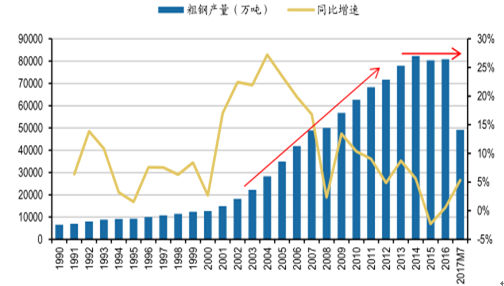 1、回收期疊加產(chǎn)能出清,供給進入快速增長軌道粗鋼產(chǎn)量達到頂峰,增長面臨停滯。21世紀(jì)以來,伴隨著工業(yè)化和城市化進程的加速,我國鋼鐵工業(yè)持續(xù)高速發(fā)展,2000-2013年鋼鐵產(chǎn)量的平均增長速度高達14.2%,而世界平均水平僅5.2%。2014年,我國粗鋼產(chǎn)量達到峰值8.23億噸。其后的2015-201...