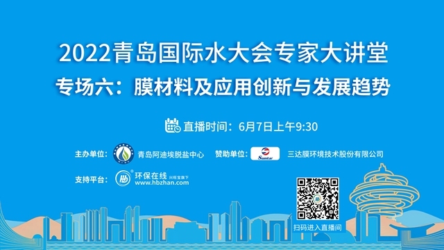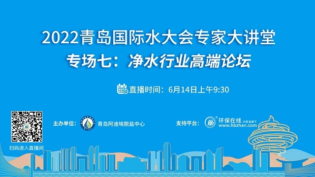 “2022青島國際水大會專家系列大講堂”接力第七場——凈水行業(yè)高端論壇將于6月14日上午登陸環(huán)保在線!緊跟海水淡化、工業(yè)節(jié)水與污水資源化、城鎮(zhèn)水務、水資源可持續(xù)、水環(huán)境治理、膜材料等議題的熱度,凈水行業(yè)的當下與未來,誠邀業(yè)界同仁共探共論。(點擊圖片,即...