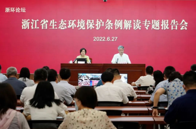 為切實做好《浙江省生態(tài)環(huán)境保護條例》(以下簡稱《條例》)的學習宣傳貫徹工作,2022年6月27日下午,省生態(tài)環(huán)境廳舉辦浙環(huán)論壇?浙江省生態(tài)環(huán)境保護條例解讀專題報告會,邀請省人大法制委員會副主任委員、一級巡視員尹林作《守護綠水青山 建設美麗浙江——浙江省生態(tài)環(huán)境保護條例介紹》專...