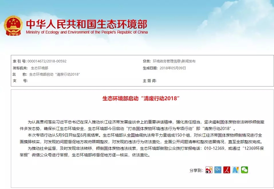 為遏制長江流域固體廢物非法轉移傾倒案件多發(fā)態(tài)勢,及時消除環(huán)境安全隱患,保障長江生態(tài)環(huán)境安全,生態(tài)環(huán)境部決定組織開展打擊固體廢物環(huán)境違法行為專項行動。從有關省(區(qū)、市)環(huán)保系統(tǒng)抽調人員,組成150個專項行動督查組,對長江經(jīng)濟帶11?。ㄊ校?400多個固體廢物堆存點位進行現(xiàn)場核查督導。這場名為“清廢行動...