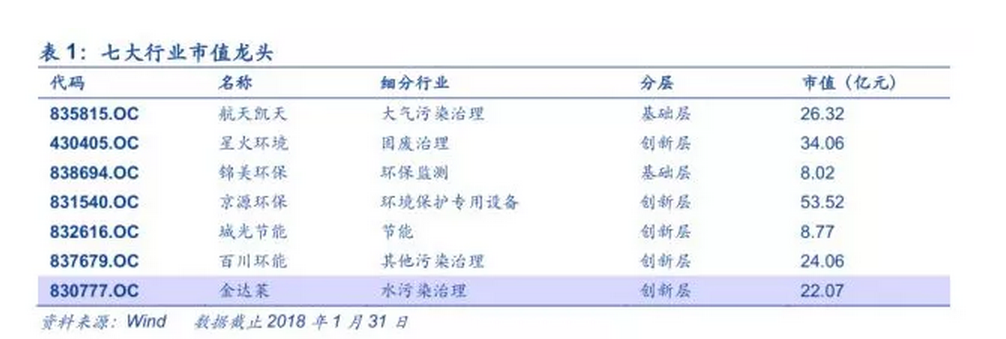 一、環(huán)保行業(yè)平均市值4.34億,市值超50億的公司有1家:新三板環(huán)保行業(yè)標的庫共計432家,截止報告截止日,共計242家公司有交易,總市值共計1054.37億元。其中大氣板塊24家,固廢治理54家,環(huán)保監(jiān)測5家,環(huán)保設備66家,節(jié)能板塊12家,水治理53家,其他板塊28家;創(chuàng)新層47家,基礎層195...