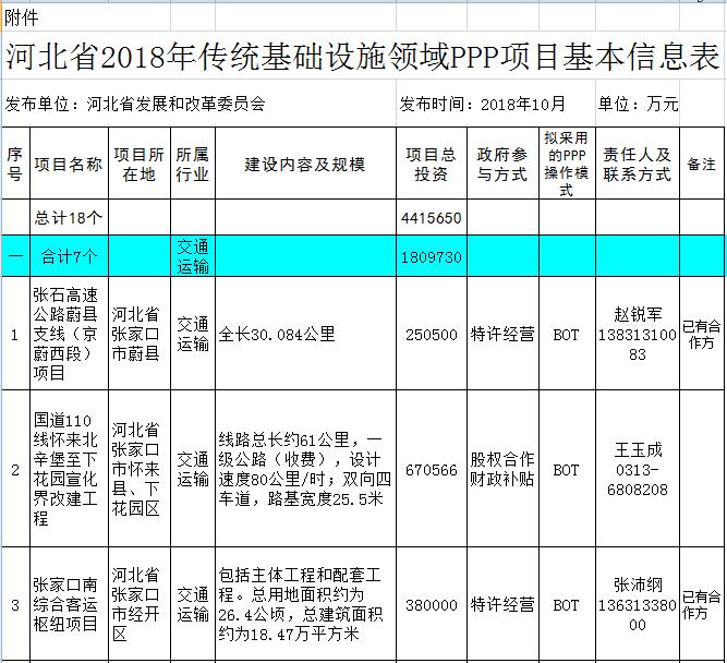 日前,省發(fā)布了2018年傳統(tǒng)基礎設施領域,鼓勵和引導民間資本進入能源、交通運輸、水利、環(huán)境保護、農(nóng)業(yè)、林業(yè)、重大市政工程等傳統(tǒng)基礎設施領域,共18個項目,涉及、流域綜合治理等7個環(huán)保項目,詳情如下:河北省2018年傳統(tǒng)基礎設施領域PPP項目為激發(fā)民間投資活力,鼓勵和引導民間資本進入能源、交通運輸、水...