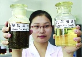 不久前,位于上海市奉賢區(qū)和浦東新區(qū)的兩個(gè)中石化加油站開放供應(yīng)由“地溝油”煉制的B5生物柴油,每升售價(jià)比普通柴油便宜0.3元,這是全國首例餐廚廢棄油脂制生物柴油進(jìn)入成品油終端銷售市場。據(jù)介紹,歷經(jīng)去除雜質(zhì)、化學(xué)反應(yīng)、蒸餾等多道工序,可從餐廚廢棄油脂中精制脂肪酸甲酯,也就是俗稱的生物柴油?!暗販嫌汀币?..