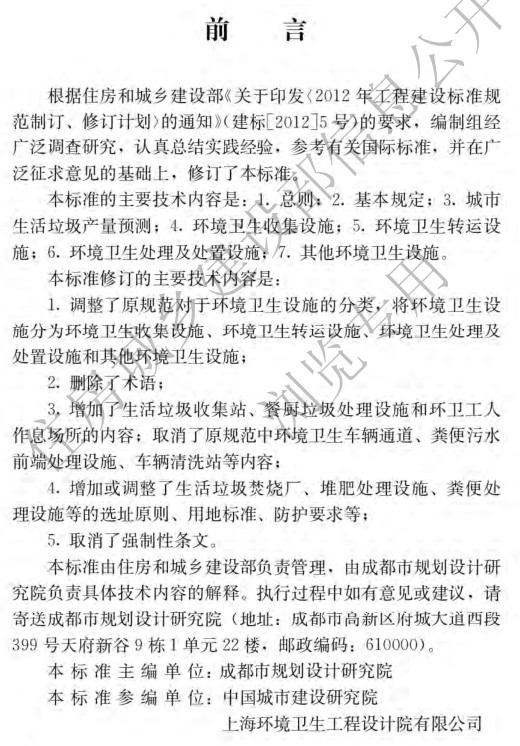 現(xiàn)批準《城市環(huán)境衛(wèi)生設(shè)施規(guī)劃標準》為國家標準,編號為GB/T50337-2018,自2019年4月1日起實施。原國家標準《城市環(huán)境衛(wèi)生設(shè)施規(guī)劃規(guī)范》(GB50337-2003)同時廢止。住房城鄉(xiāng)建設(shè)部關(guān)于發(fā)布國家標準《城市環(huán)境衛(wèi)生設(shè)施規(guī)劃標準》的公告現(xiàn)批準《城市環(huán)境衛(wèi)生設(shè)施規(guī)劃標準》為國家標準,編號...