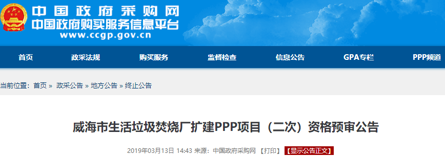 中國環(huán)聯網獲悉,3月13日,山東省威海市生活垃圾焚燒廠擴建PPP項目發(fā)布二次資格預審公告。1、項目概況:1.1項目名稱:威海市生活垃圾焚燒廠擴建PPP項目1.2項目編號:SDGP3710002019020000221.3采購人:威海市園林管理局2、采購需求2.1本項目主要工程內容為500噸/日處理量...