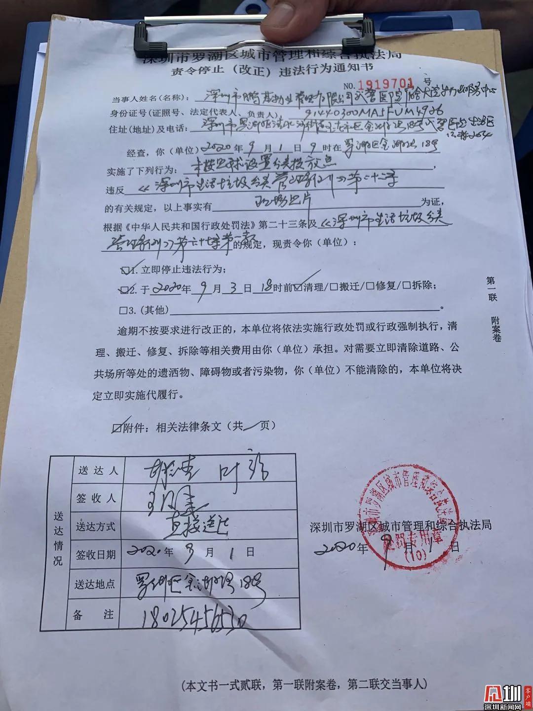 9月1日是《深圳市生活垃圾分類管理?xiàng)l例》實(shí)施的第一天,垃圾分類執(zhí)法檢查也同步啟動(dòng)。早上,深圳市城管執(zhí)法人員就出動(dòng)了。早上8時(shí)34分,在羅湖區(qū)的銀龍花園,深圳市城管和綜合執(zhí)法局聯(lián)合清水河街道執(zhí)法隊(duì)開(kāi)出了首張責(zé)令整改通知書,小區(qū)的垃圾桶沒(méi)有集中擺放,包括大件垃圾沒(méi)有及時(shí)清運(yùn)?!钲谑谐枪軋?zhí)法人員來(lái)到羅湖...