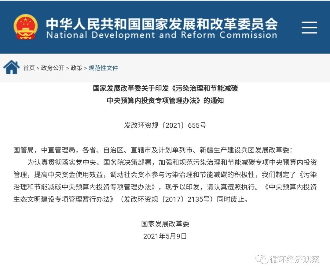 文章導讀5月9日,國家發(fā)改委印發(fā)《污染治理和節(jié)能減碳中央預算內(nèi)投資專項管理辦法》(以下簡稱“辦法”)的通知,辦法稱,為加強和規(guī)范污染治理和節(jié)能減碳專項中央預算內(nèi)投資管理,提高中央資金使用效益,調(diào)動社會資本參與污染治理和節(jié)能減碳的積極性,特制定本辦法。此專項將重點支持污水垃圾處理等環(huán)境基礎(chǔ)設施建設、節(jié)...
