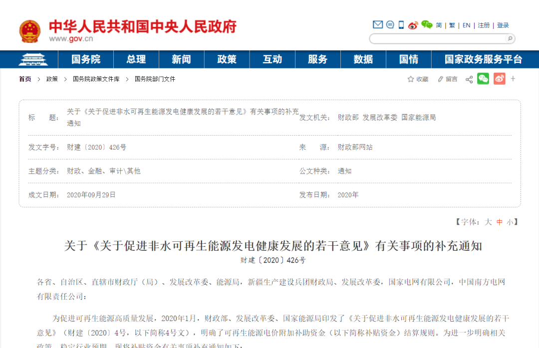 文章導讀10月10日,財政部“2020人大代表建議復文公開”一欄發(fā)布了《財政部對十三屆全國人大三次會議第8605號建議的答復》,就十三屆全國人大代表、中國華電集團董事長、黨組書記溫樞剛提出的關(guān)于解決可再生能源電價補貼欠費問題的建議作出答復。在回復關(guān)于采取多項措施解決補貼拖欠問題的建議時,財政部表示,...