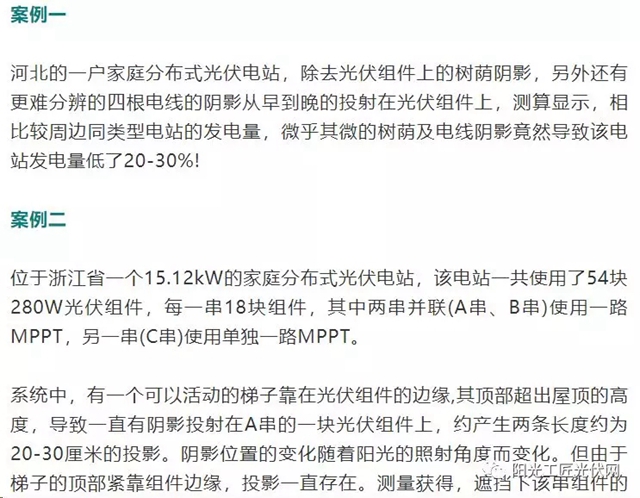 眾所周知,光伏電站中的陰影遮擋,其中包括電線桿、植物、鳥糞、灰塵以及組件的前后排遮擋等,那么光伏系統(tǒng)的發(fā)電量究竟會有多少變化,對于投資收益的影響又有多少呢? 在家庭戶用電站中,很多的業(yè)主為了安裝時的一次性到位,往往不能完全避開陰影,因為業(yè)主們覺得反正陰影遮擋的區(qū)域并不大,不會嚴(yán)重影響發(fā)電量。但實際上...