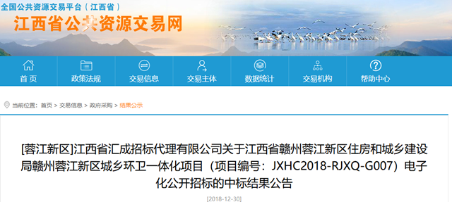 江西省贛州蓉江新區(qū)城鄉(xiāng)環(huán)衛(wèi)一體化項目發(fā)布中標結(jié)果公告,龍馬環(huán)衛(wèi)和中聯(lián)環(huán)境分獲一、二標段。其中,一標段中標金額達1.08億,二標段中標金額達1.15億,項目總金額達2.23億。 12月6日,該項目發(fā)布招標公告,根據(jù)公告顯示,項目的招標內(nèi)容如下: 原標題:江西贛州城鄉(xiāng)環(huán)衛(wèi)一體化項目結(jié)果發(fā)布,龍馬、中聯(lián)分...