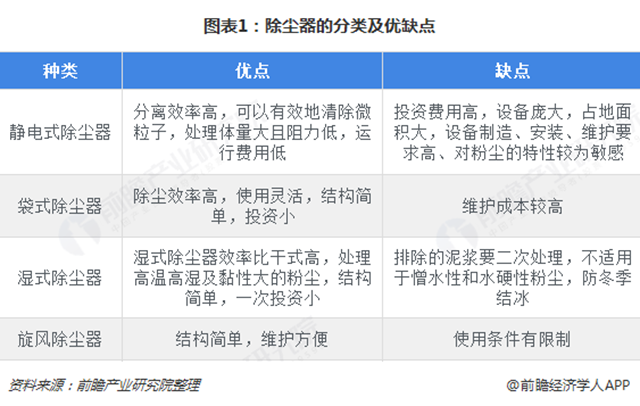 除塵設(shè)備行業(yè)基本概況分析:定義、分類 除塵設(shè)備是指把粉塵從煙氣中分離出來(lái)的設(shè)備,是大氣污染控制應(yīng)用最多的設(shè)備,也是除塵工程中最重要的設(shè)備,也被稱為除塵器。 根據(jù)工作原理分類,除塵器可分為靜電式除塵器、袋式除塵器、濕式除塵器及旋風(fēng)除塵器等。其中,靜電式除塵器除塵效率高、運(yùn)行費(fèi)用較低,但設(shè)備龐大、占地面...