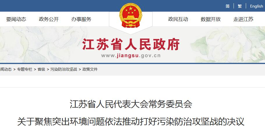 日前,省發(fā)布了《江蘇省人民代表大會(huì)常務(wù)委員會(huì)關(guān)于聚焦突出依法推動(dòng)打好的決議》,自公布之日起施行。詳情如下:(2018年9月21日江蘇省第十三屆人民代表大會(huì)常務(wù)委員會(huì)第五次會(huì)議通過)江蘇省人大常委會(huì)公告第 6 號(hào)《江蘇省人民代表大會(huì)常務(wù)委員會(huì)關(guān)于聚焦突出環(huán)境問題依法推動(dòng)打好污染防治攻堅(jiān)戰(zhàn)的決議》已由江...