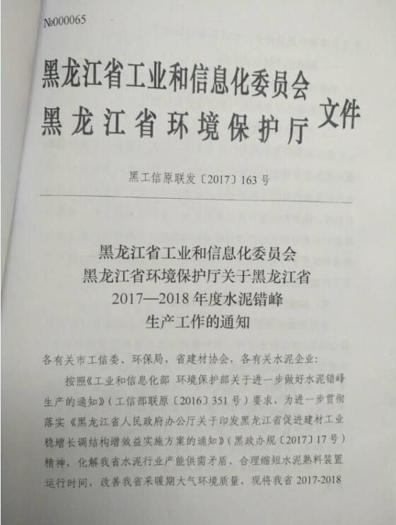 近日,省工信委黑龍江省環(huán)保廳聯(lián)合發(fā)布《關(guān)于黑龍江省2017-2018年度水泥工作的通知》,將于2017年11月1日至2018年3月底前,在全省境內(nèi)所有水泥熟料生產(chǎn)企業(yè)全面實(shí)行錯峰生產(chǎn)。黑龍江省工業(yè)和信息化委員會黑龍江省環(huán)境保護(hù)廳關(guān)于黑龍江省2017-2018年度水泥錯峰生產(chǎn)工作的通知各縣(市)、區(qū)環(huán)...