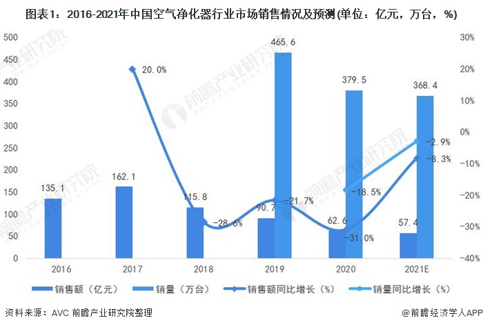 行業(yè)規(guī)模大幅下滑 近年來(lái),中國(guó)空氣凈化器行業(yè)的銷售額和銷量均呈現(xiàn)下滑的態(tài)勢(shì)。其中2020年中國(guó)空氣凈化器銷量為379.5萬(wàn)臺(tái),同比下降18.5%;銷售額為62.6億元,同比下滑31%。在2020年疫情的影響下,居民對(duì)于健康的重視程度不斷提升,將帶動(dòng)空氣凈化器產(chǎn)品的需求增長(zhǎng)。 2021年行業(yè)的降幅將有...