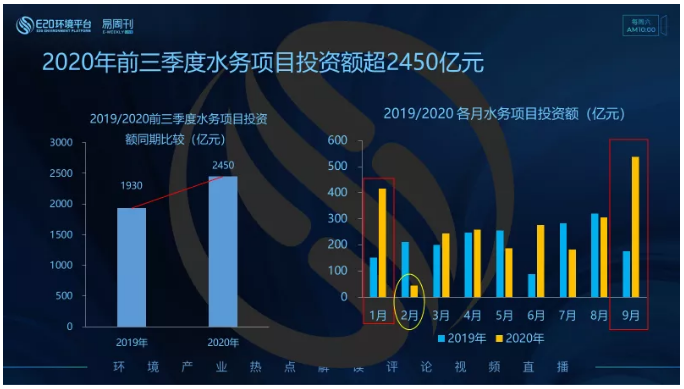 市場(chǎng)走勢(shì):2020年前三季度水務(wù)項(xiàng)目投資額超2450億元,同比增長(zhǎng)27% E20研究院數(shù)據(jù)中心獲悉:2020年前三季度共計(jì)成交水務(wù)投資運(yùn)營(yíng)項(xiàng)目389個(gè),總投資額超2450億元,與2019同期相比(左圖),投資額增長(zhǎng)約27%。 對(duì)比不同年份各月水務(wù)項(xiàng)目總投資情況(右圖),2020年2月由于疫情原因?qū)е?..