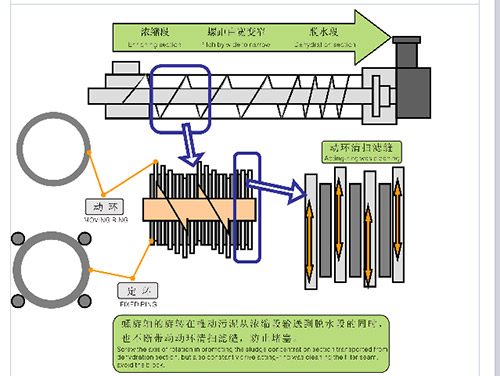 一、工作原理:的工作原理是由固定環(huán)和游動(dòng)環(huán)的相互層疊,螺旋軸貫穿其中形成的過濾裝置推動(dòng)。前端為濃縮部后端為脫水部。固定環(huán)和游動(dòng)環(huán)之間形成的濾縫以及螺旋軸的螺距從濃縮部到脫水部逐漸變小。螺旋軸的旋轉(zhuǎn)在推動(dòng)污泥從濃縮部到脫水部的同時(shí),也不斷帶動(dòng)游動(dòng)環(huán)清掃濾縫,防止堵塞。污泥在濃縮不經(jīng)過重力濃縮后,被運(yùn)輸...