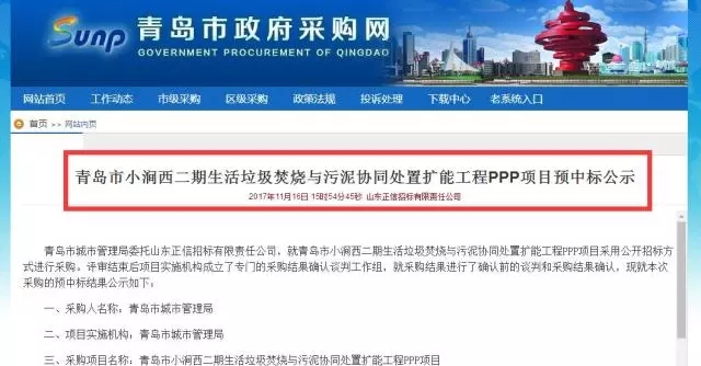 2017年11月16日,南陽靜脈產(chǎn)業(yè)園環(huán)保能源熱電聯(lián)產(chǎn)PPP項目、青島市小澗西二期生活垃圾焚燒與污泥協(xié)同處置擴能工程兩座垃圾焚燒發(fā)電項目同日發(fā)布中標信息,預(yù)中標單位均為康恒環(huán)境。來源:政府采購網(wǎng)總投資約4.2億元!預(yù)中標青島小澗西二期垃圾焚燒與污泥協(xié)同處置擴能工程11月16日,據(jù)青島市公共資源交易中...