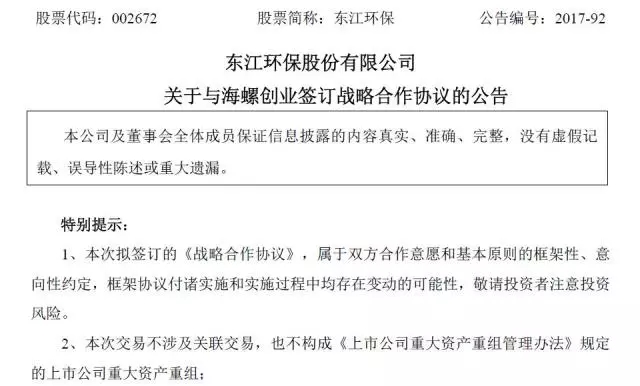 12月4日下午,東江環(huán)保發(fā)布公告稱,公司擬與中國海螺創(chuàng)業(yè)控股有限公司(下簡稱“海螺創(chuàng)業(yè)”)于2017年12月6日簽署《戰(zhàn)略合作協(xié)議》,就水泥窯協(xié)同處置固廢事宜達成戰(zhàn)略合作意向。預(yù)計雙方將在固廢處理領(lǐng)域?qū)崿F(xiàn)強強聯(lián)合、優(yōu)勢互補,共同推進危廢處理行業(yè)的健康發(fā)展。來源:中證網(wǎng)海螺創(chuàng)業(yè)海螺創(chuàng)業(yè)是一家在香港聯(lián)合...