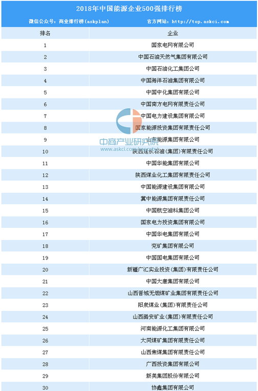 導讀:中商產(chǎn)業(yè)研究院發(fā)布了《2018年中國能源企業(yè)500強排行榜(附完整排名)》,起重量涉及多家垃圾發(fā)電企業(yè),如中國節(jié)能集團、深圳能源集團、杭州錦江集團等。具體內(nèi)容如下:日前,2018年中國能源企業(yè)500強榜單出爐。據(jù)悉,此榜單以各能源集團上一年度營業(yè)收入為評價標準,數(shù)據(jù)主要來企業(yè)自報、相關機構或企...