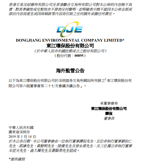 1月23日,東江環(huán)保公布,公司2018年12月收到揭陽大南海石化工業(yè)區(qū)國業(yè)投資開發(fā)有限公司(以下簡稱“國業(yè)公司”)發(fā)來的《中標通知書》,確認公司中標揭陽大南海石化工業(yè)區(qū)危險廢物處理項目(以下簡稱“揭陽大南海危廢項目”)。2019年1月23日,公司第六屆董事會第二十八次會議審議通過了《關于簽訂合作協(xié)議...