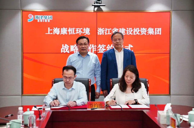 6月8日,康恒環(huán)境與浙江省建設(shè)投資集團(tuán)在杭州簽訂戰(zhàn)略合作框架協(xié)議。浙江省建設(shè)投資集團(tuán)黨委書記、董事長沈德法,康恒環(huán)境董事長兼首席執(zhí)行官龍吉生出席簽約儀式。 圖為浙江省建設(shè)投資集團(tuán)副總經(jīng)理、黨委委員鐘建波,康恒環(huán)境輪值CEO李海燕,在沈德法書記、龍吉生董事長的見證下簽約。 在簽約儀式上,沈德法書記對龍...