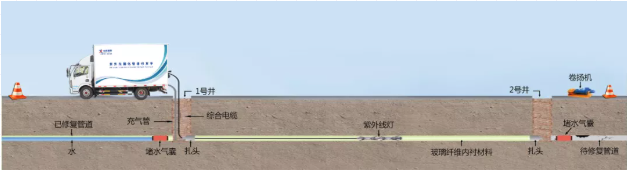 紫外線光原位固化內(nèi)襯非開挖修復技術(shù)是將玻璃纖維編制成軟管浸漬光固化樹脂,然后將其拉入原有管道內(nèi)充氣擴張緊貼原有管道,以原有管道為外模,軟管內(nèi)膜為內(nèi)模,然后紫外光的作用下使樹脂固化形成具有一定強度的復合內(nèi)襯管的原位固化法。待管道清理完畢,且管道破裂塌陷預處理完后,采用紫外光固化內(nèi)襯修復技術(shù)進行修復。 ...